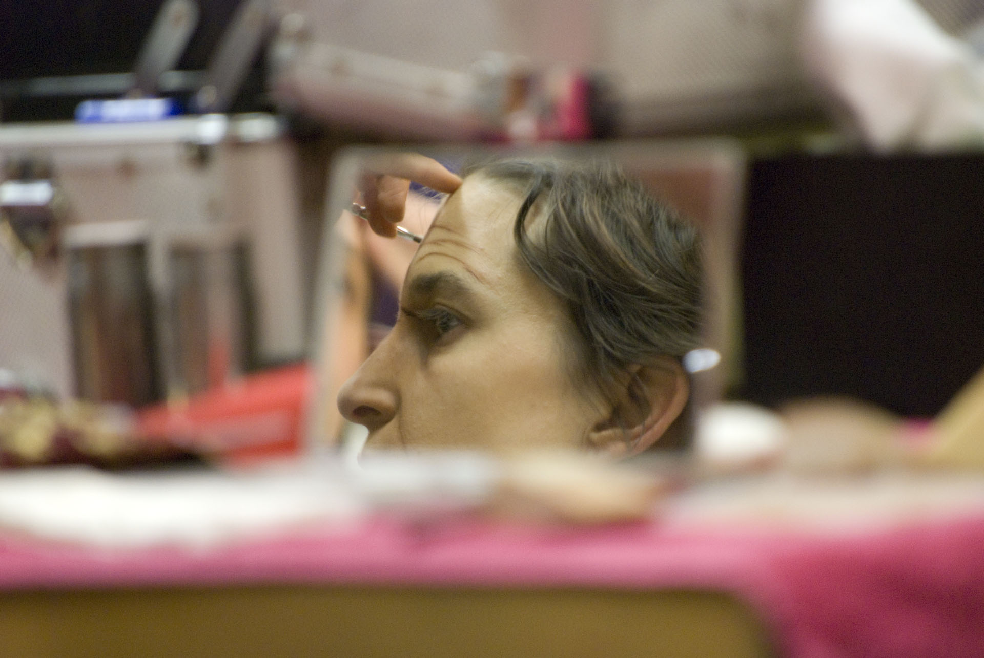 Das zweite Bild finde ich von der Idee her super, von der Umsetzung würde ich mir wünschen, dass man von der Person "etwas mehr" sieht - also z.B. wenigstens ein offenes Auge. Das Setting und die Bild-Idee, dass nur der Ausschnitt der Person im Spiegel scharf ist und alles andere in Unschärfe finde ich absolut ausbaufähig. B-)